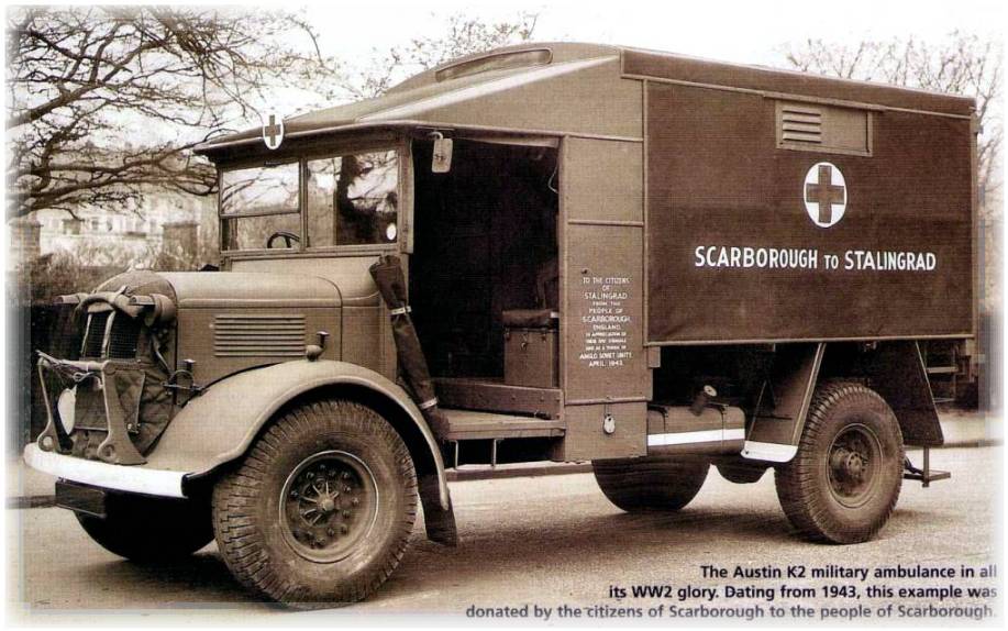 Though photographs of vehicles in Russian service exist, it's not yet totally sure that among the 500 British Austin trucks, delivered to Russia from late 1941 to 1942, were Austin K2/Y Heavy Ambulances.