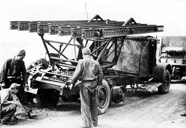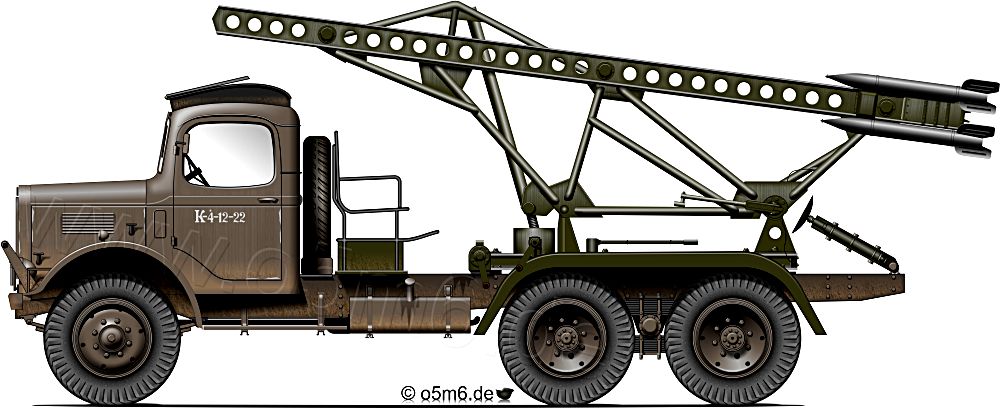 At that time, the Red Army was still testing adequate chassis for their 2-ton 16 x 132mm M-13 rocket launchers.