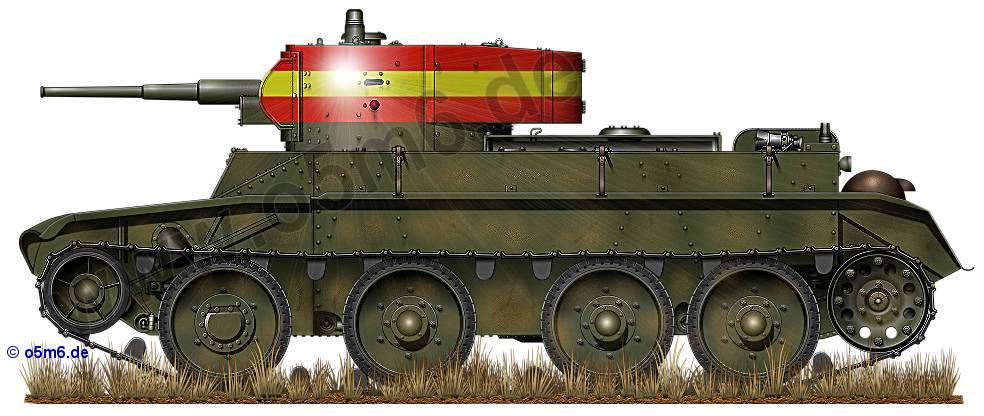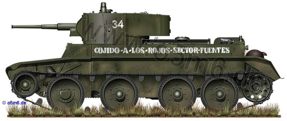 The 50 BT-5 arrived on Aug 10, 1937 and were mainly deployed on the Spanish »Eastern Front« during the battles of Zaragoza and Ebro. As with the T-26, captured samples were instantly used by the Nationalist tank brigades.