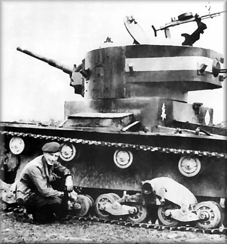 Sufficiently armoured against its machine gun equipped German and Italian counterparts and well armed with the 45mm gun, the T-26 was only threatended by artillery and land mines.