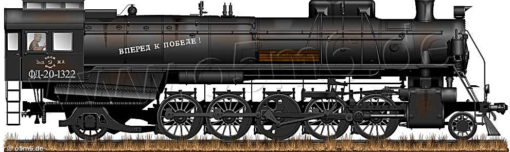 Based on modern U.S. American design, roughly 3,000 of these 130-ton engines were built at the Voroshilovgrad (also called: Lugansk) Locomotive Works in the 1930s.