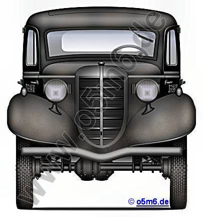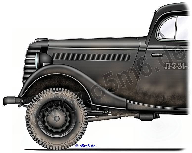 GAZ-11-40 4x2 phaeton was upgraded with a driven front-axle leading to the characteristic high structure, resulting in the new »GAZ Model 61« (see → bottom drawing).