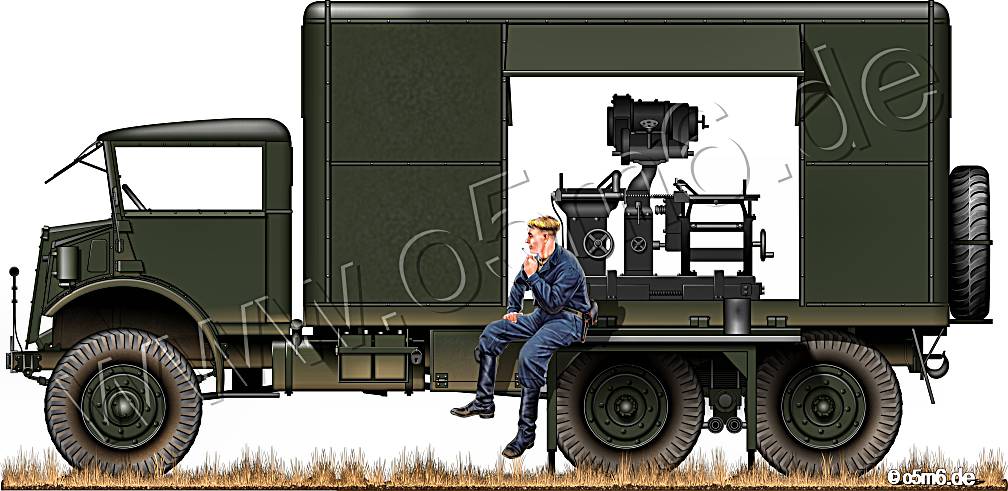 It was designed to carry various special body types, so-called »stores«, among them the mobile workshop shown here.