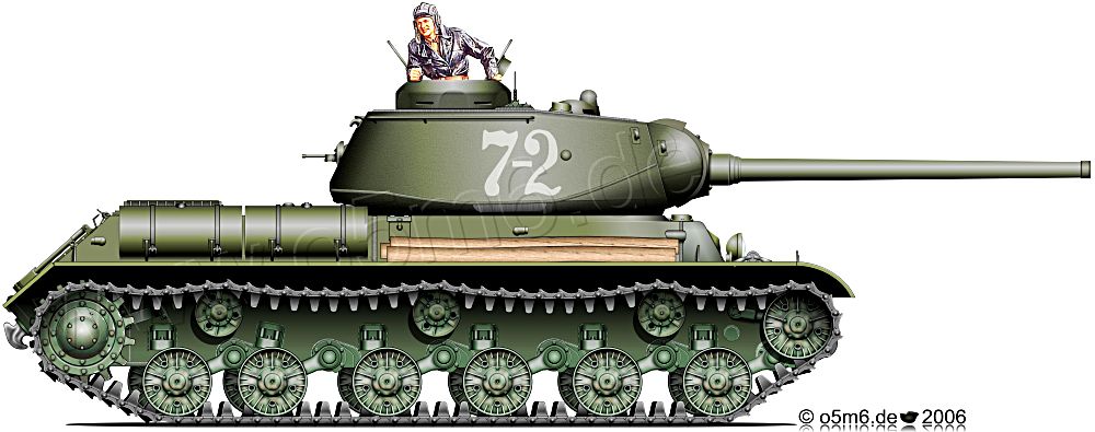 Based on the KV series the new tank had a new hull, improvements in the suspension, transmission, and power train. There was no machine gun in the hull which allowed for a better ballistic shape.