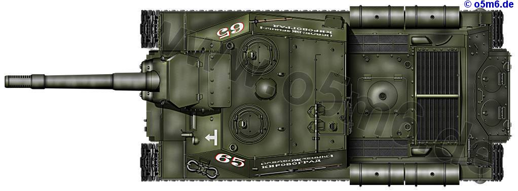 During the production process longing far beyond war's end, some improvements were incorporated, as a welded hull front instead of the cast one and the addition of the 12.7mm DShK AA hMG from October 1944 on. Up to the end of the war CHKZ released 2474 ISU-152, with another 100 produced by the Kirovskiy works in reliberated Leningrad.