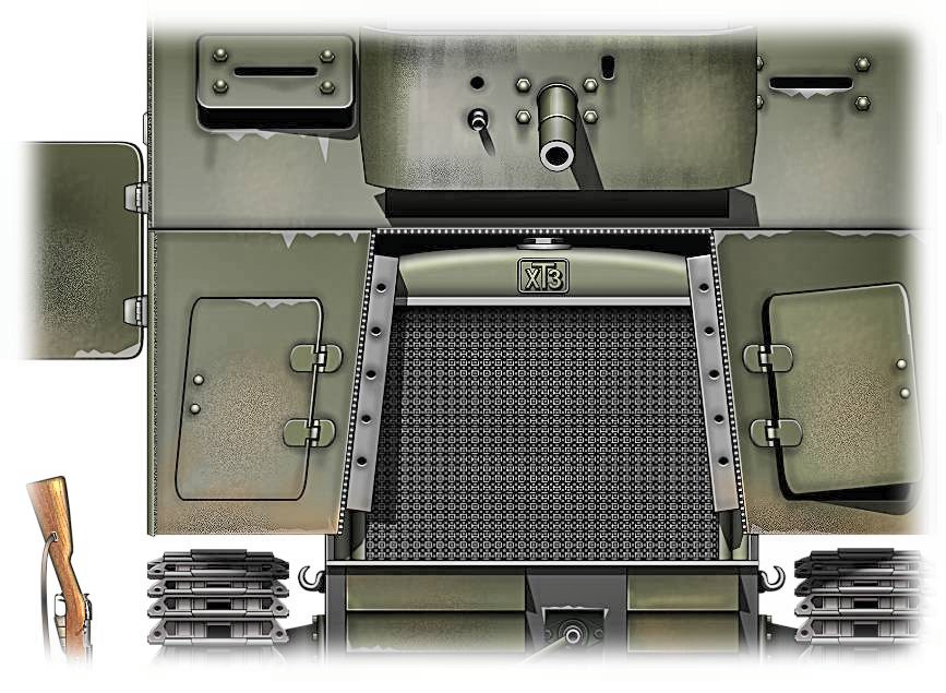 Kharkov Tractor Zavod (»KhTZ« or »XTZ« in cyrillic) installed one inch armour plates around the