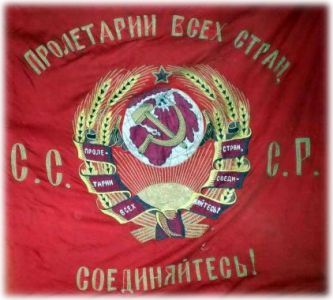 The lead tank carries the slogan "We defend the conquests of October" referring to the October Revolution that put the Bolsheviks in power in 1917 which took place from Palace Square.