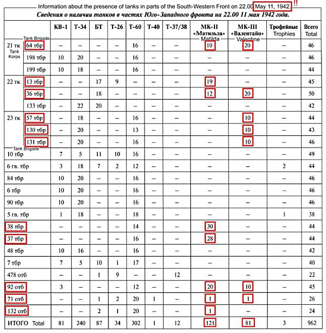 On May 13, 1942, the 22th Tank Corps clashed into the German 23rd Panzer Division with the follwoing results :