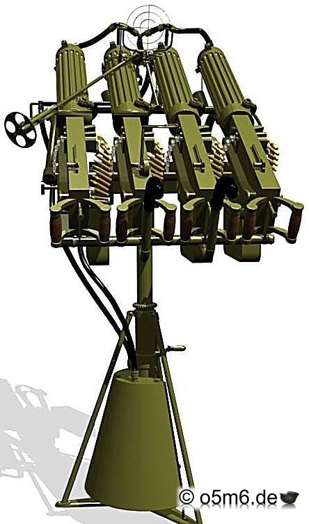 The M4M was the standard pre-war anti-aircraft weapon of the Red Arny and was built of four water-cooled Model 1910 maxim machine guns.