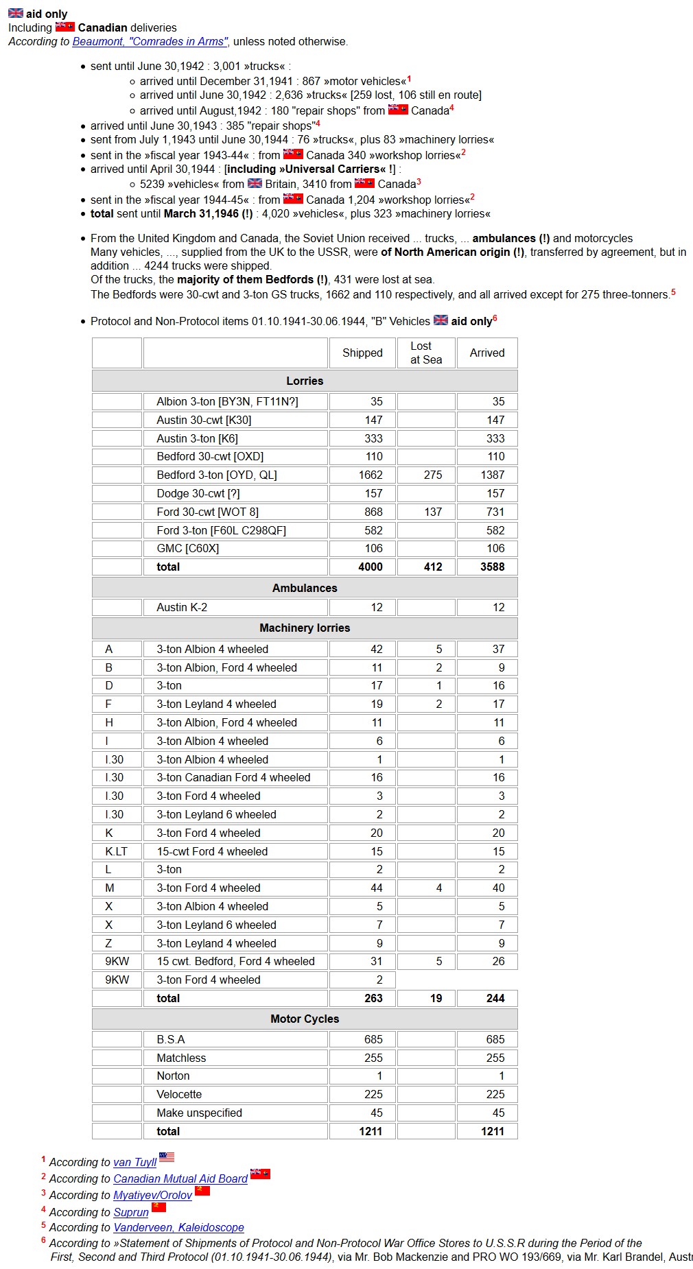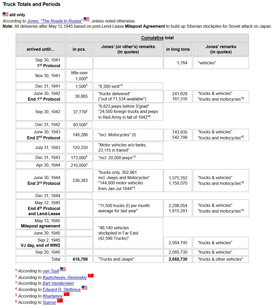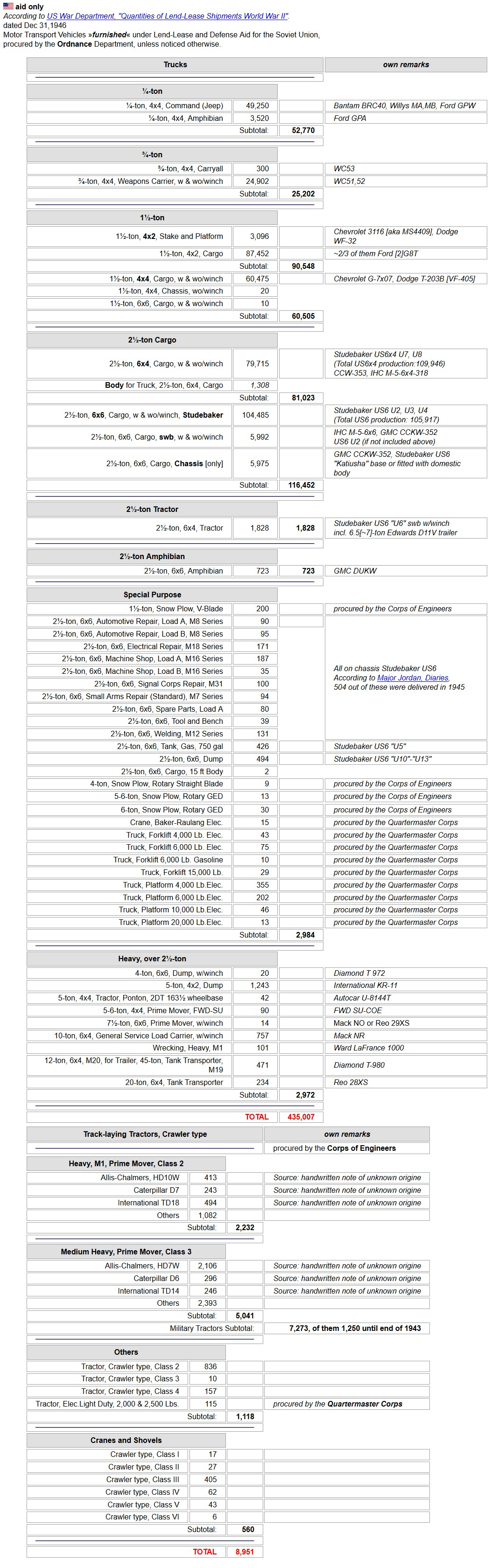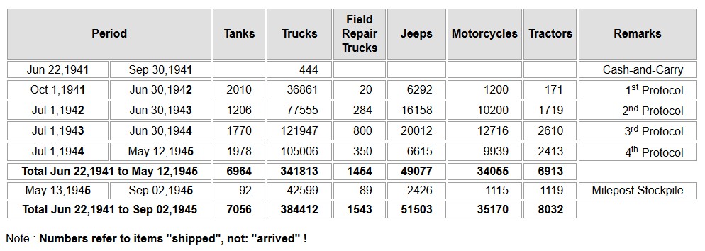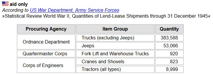 Numbers of Foreign Aid/Lend-Lease to Russia