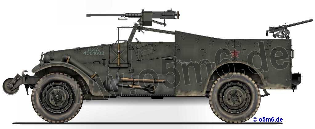 From 1942 on, the Soviet Union received almost 3,100 units of the Scout Car M3A1 and used it successfully as for reconnaissance duties, as command vehicle (e.g. General Rotmistrov) and for towing light artillery.