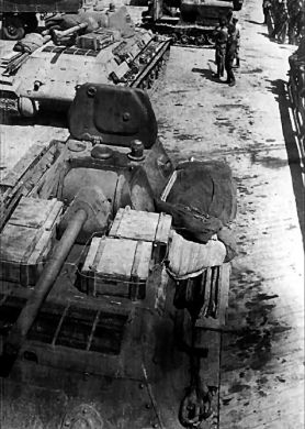 The modified F-34 gun mantlet provided by Barrikady came to a sharp point in contrast to the blunt nose type produced at Zavod Nr. 92 in Gorki.
