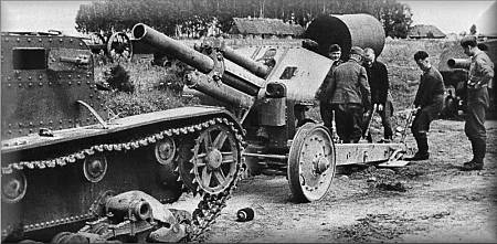 In order to fulfill the demand for an armoured artillery tractor, capable of towing the 76mm F-22 divisional gun, the design bureau at the Voroshilov factory N° 174 developed an artillery tractor based on the T-26 light tank chassis.