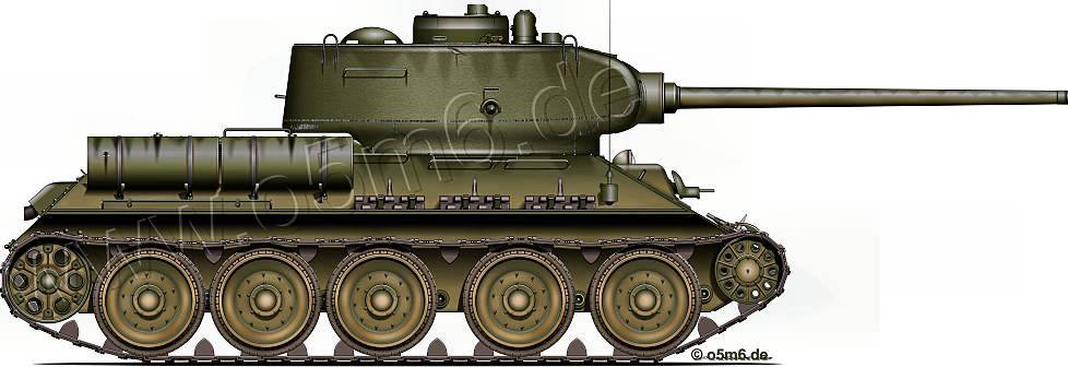 The larger turret, designed by V. Kerichev, easily accomodated the 85mm gun.