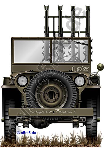 The ingenious Russian designers eventually found a solution by combining the mobile BM-8-8 82mm rocket launcher with the notoriously passable »Willysov«.