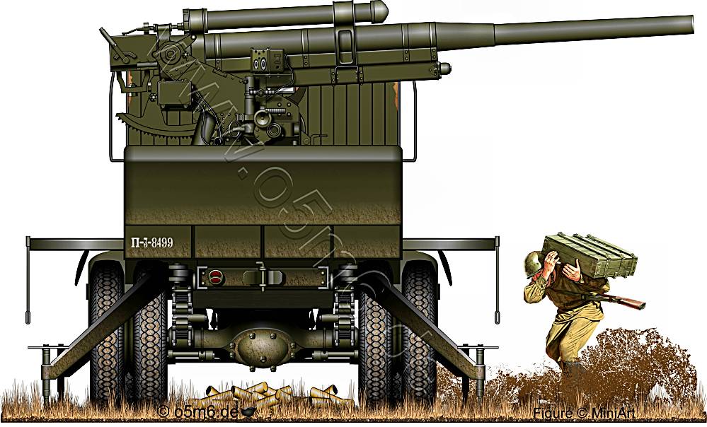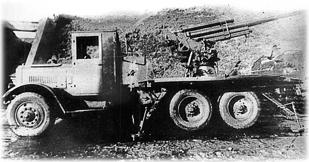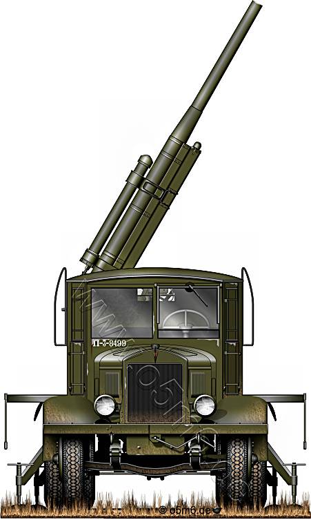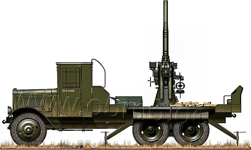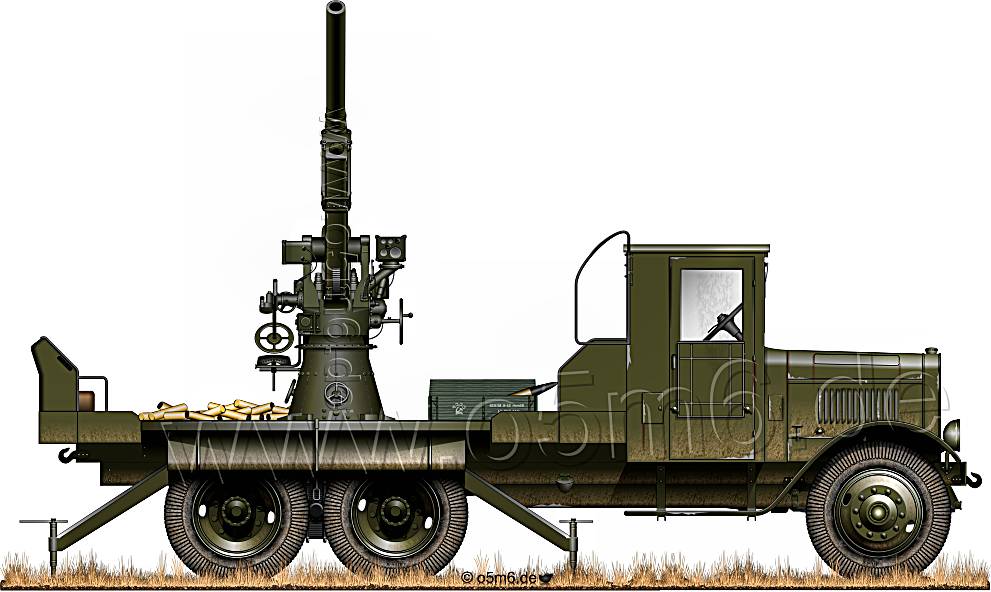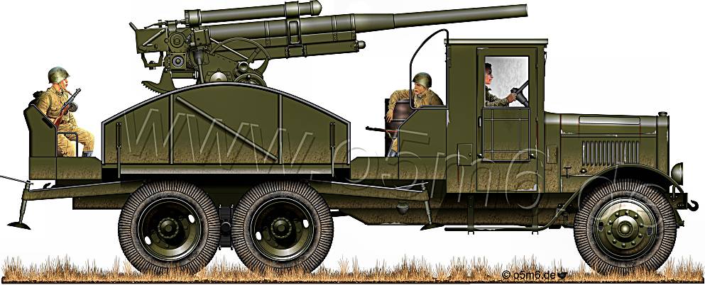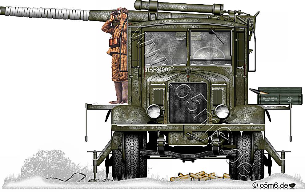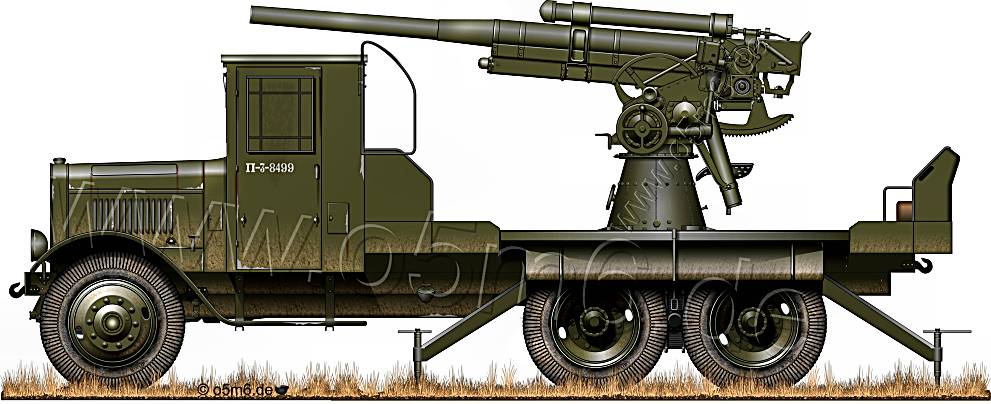 76mm Model 1931 Anti-Aircraft Gun in 3 o'clock position, elevation 3 degrees