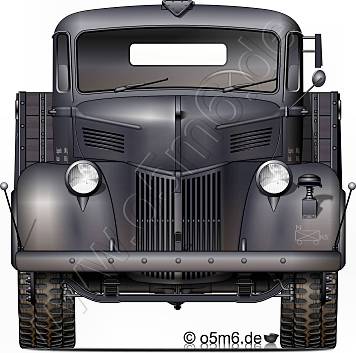 Right : Late production series with flat fenders, small headlights, u-shaped bumper and additional hood openings