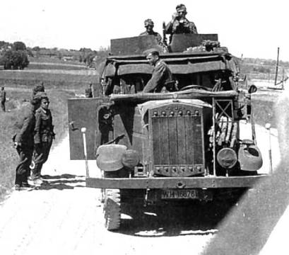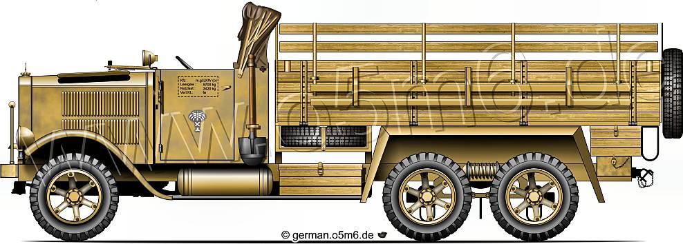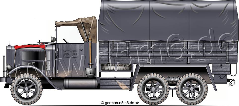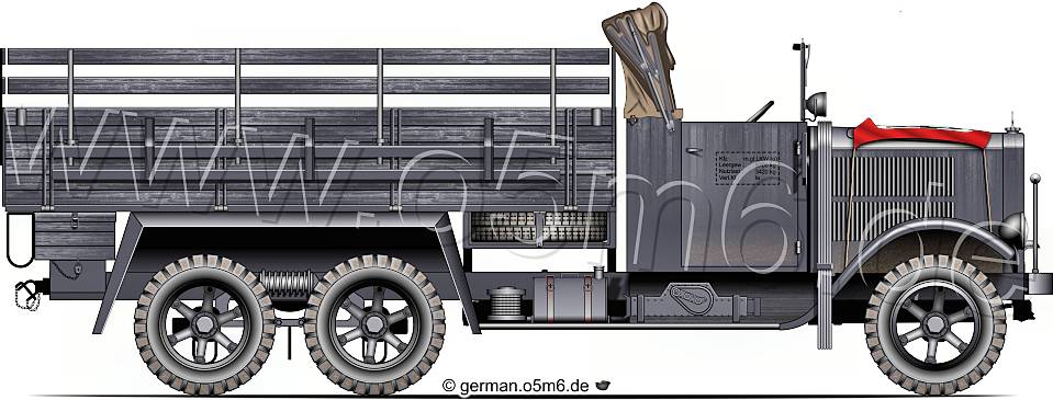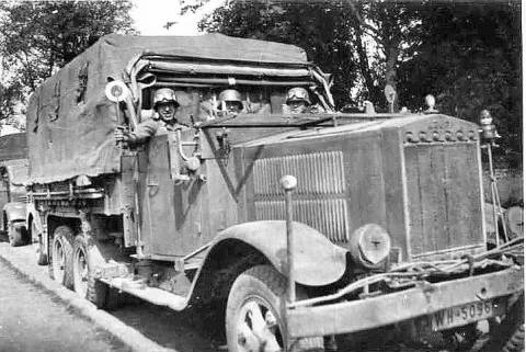 In the Wehrmacht this vehicle was used with a wide variety of bodies, e.g. as cargo trucks, radio trucks, photography trucks, spotlight trucks, artillery towing trucks and etc.
