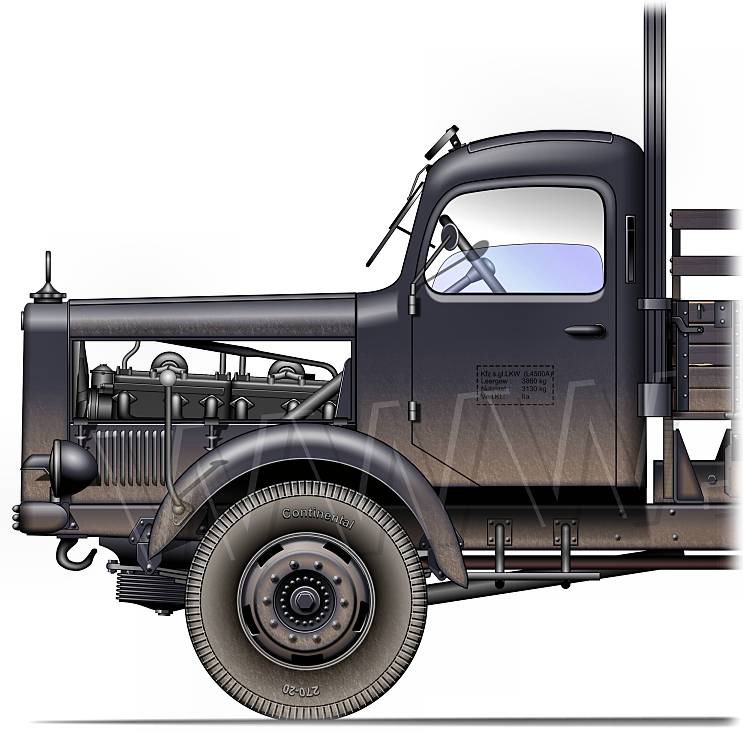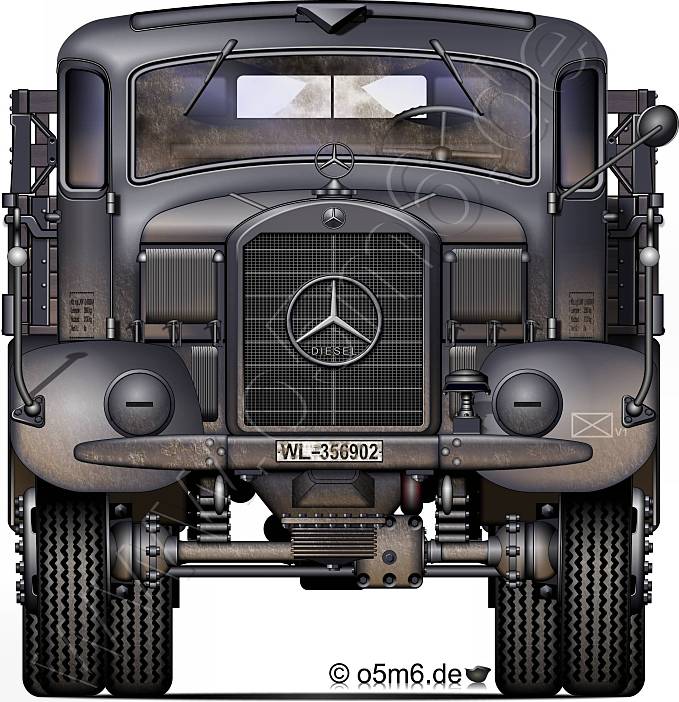 Final war production series with »Einheitsführerhaus«, flat fenders, small headlamps, narrow bumper and missing firm embleme