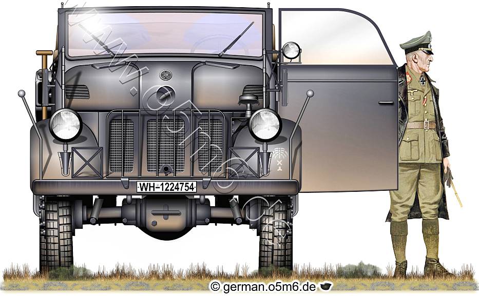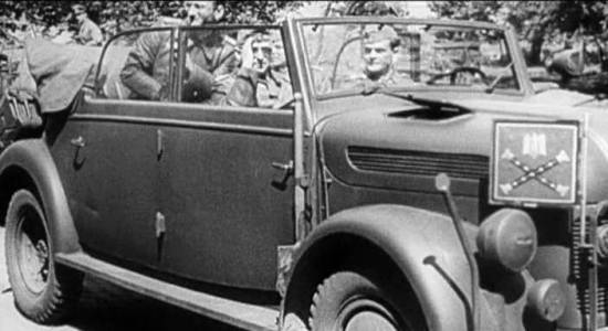 Walter Model (greeting, with sunglasses) in his Steyr Command Car