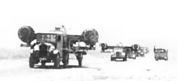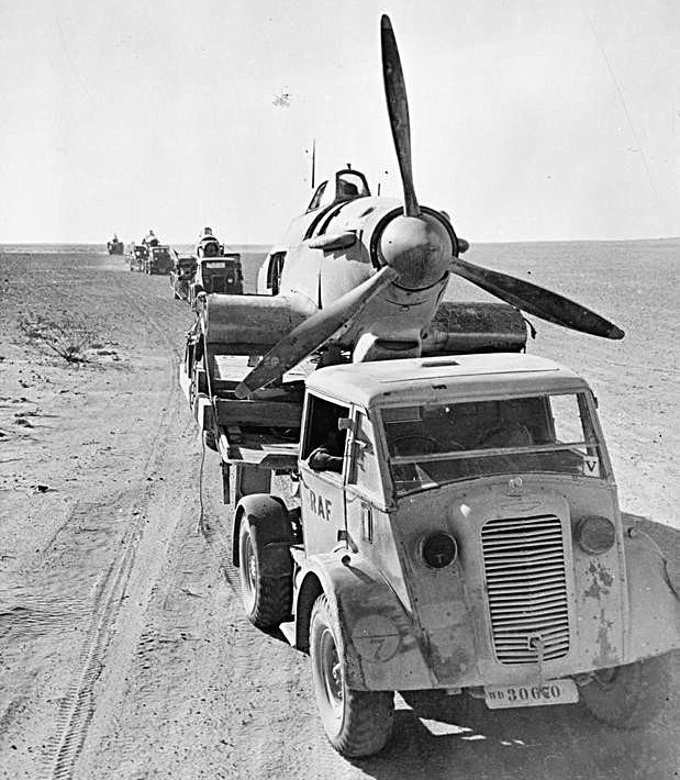 Convoy of Albions hauling Bristol Blenheim bombers thru the desert