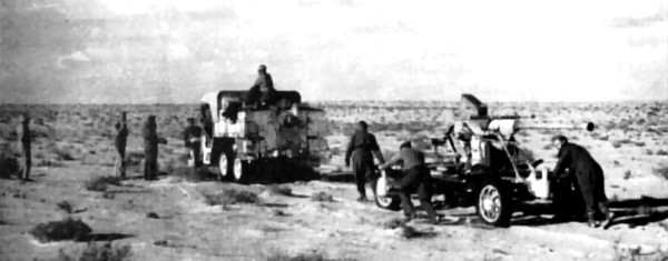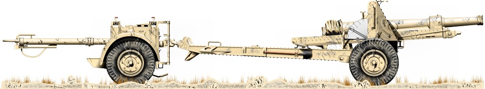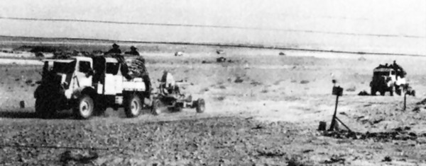 Two formidable actors on the desert stage : the 25-pounder and the "Quad"