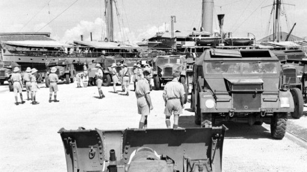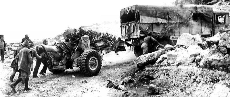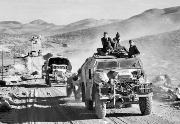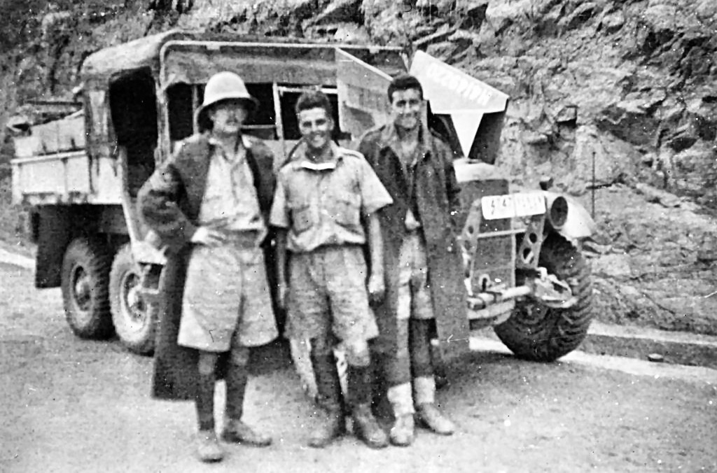 Passing an Italian milestone decorated with the 51st Highlander Division embleme