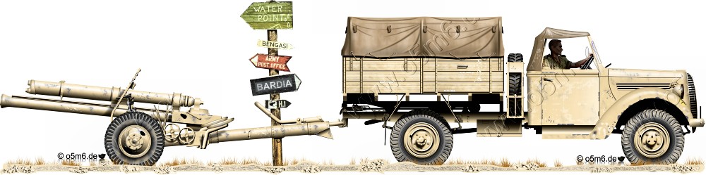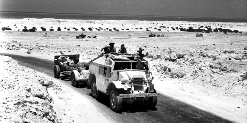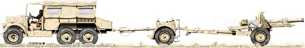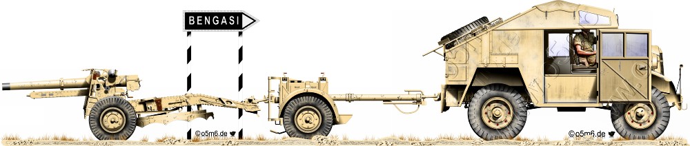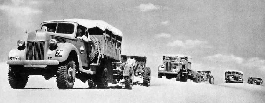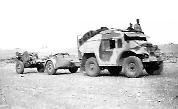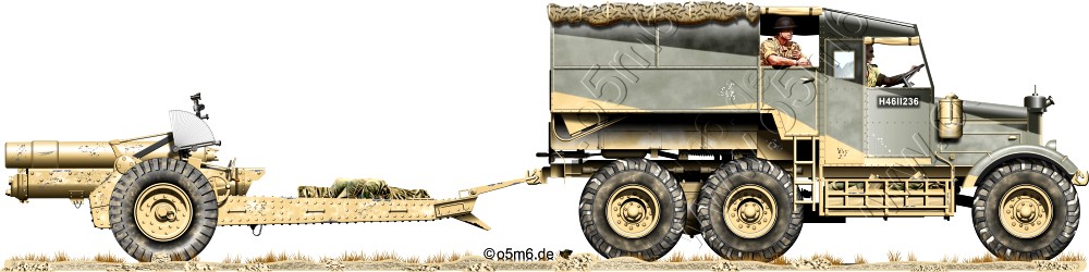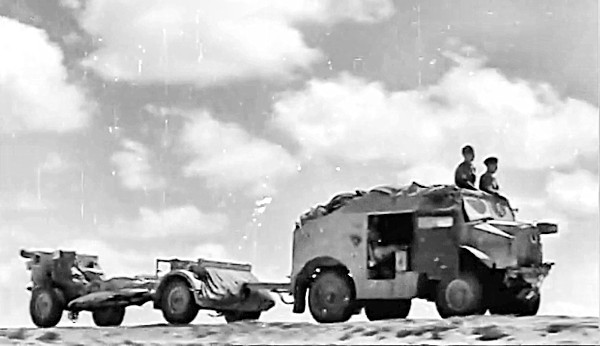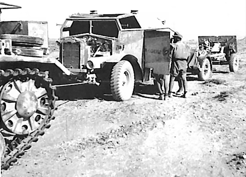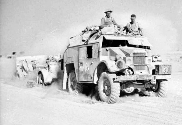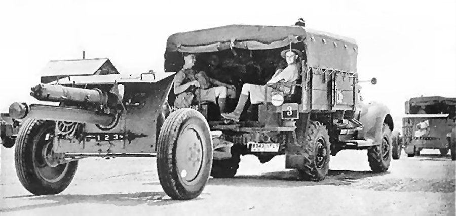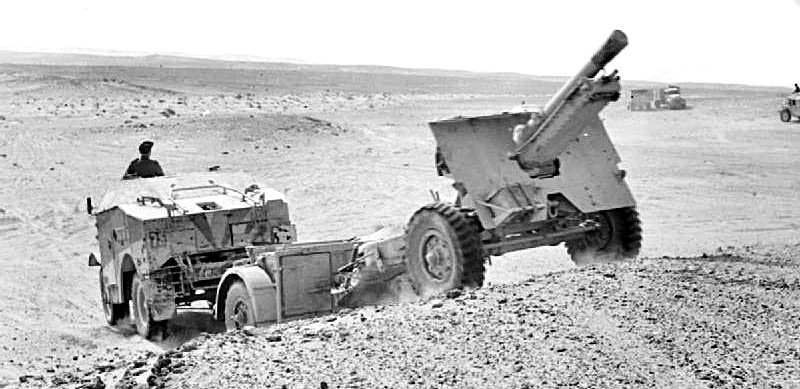 Famous image of LP3[A]s of 6th Australian Division hauling 4.5in. Howitzers thru the desert