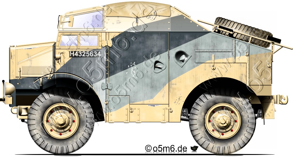 Well known shot of the Caunter camouflaged Morris with No.75 Arms-of-Service Number