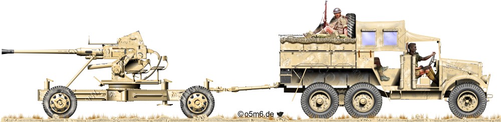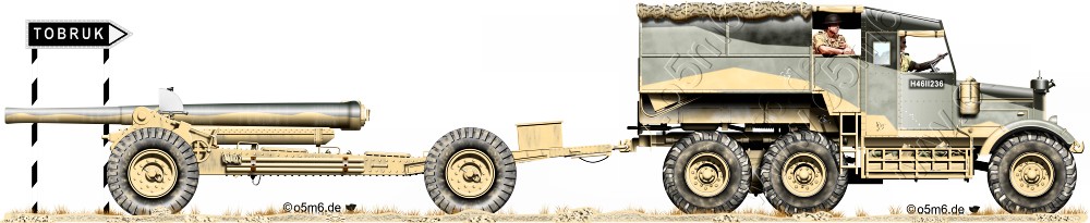 "Caunter" scheme camouflaged Matador hauling the 6in.26cwt Heavy Howitzer over Halfaya ("Hellfire") Pass