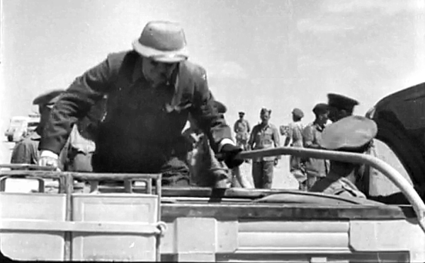 Churchill and Brooke riding a Morris Commercial PU 8-cwt light truck