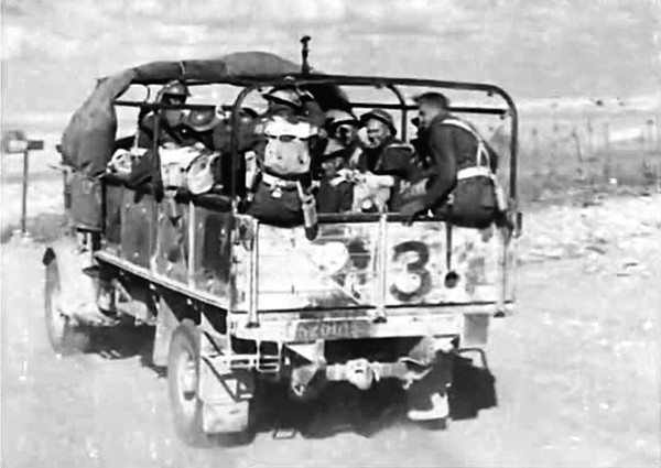 Heavily crowded 1.5-ton Chevrolet "Indian Pattern" following