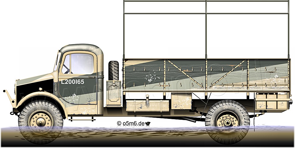 Bedford OYD in "Caunter" camouflage of 2nd NZ Div. in the flood